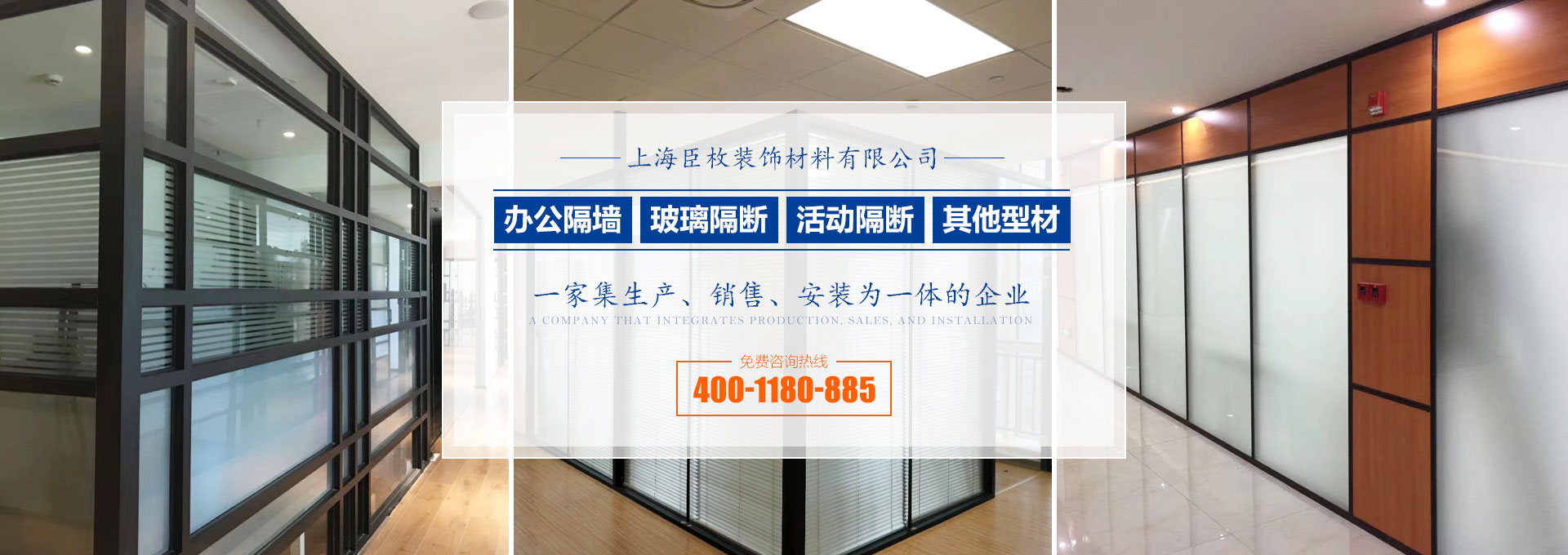 上海臣枚装饰材料有限公司一家集办公隔墙、玻璃隔断、活动隔断等型材的生产、销售、安装为一体的企业。